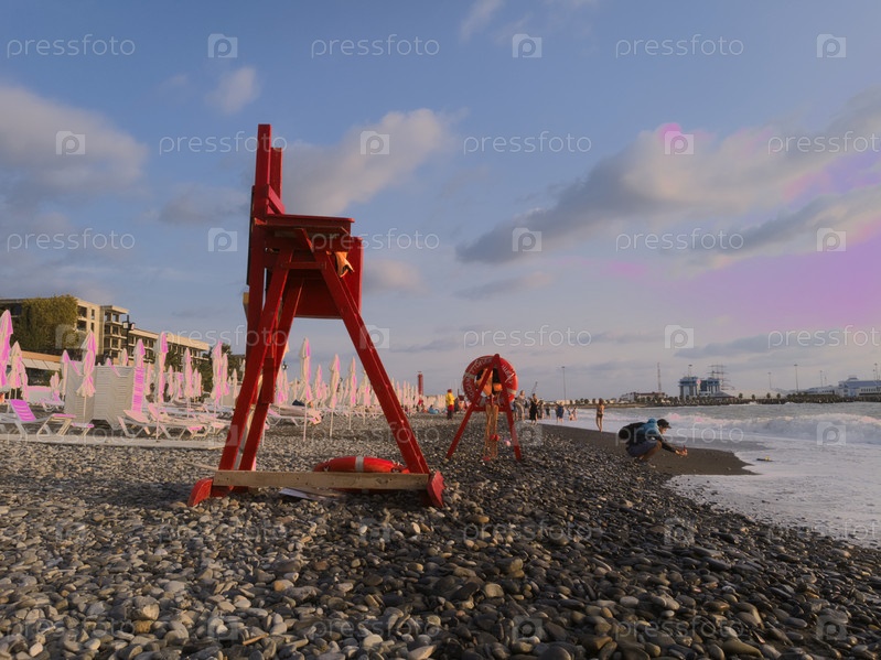 Спасательная вышка . На пляже Ривьера. Город. Сочи