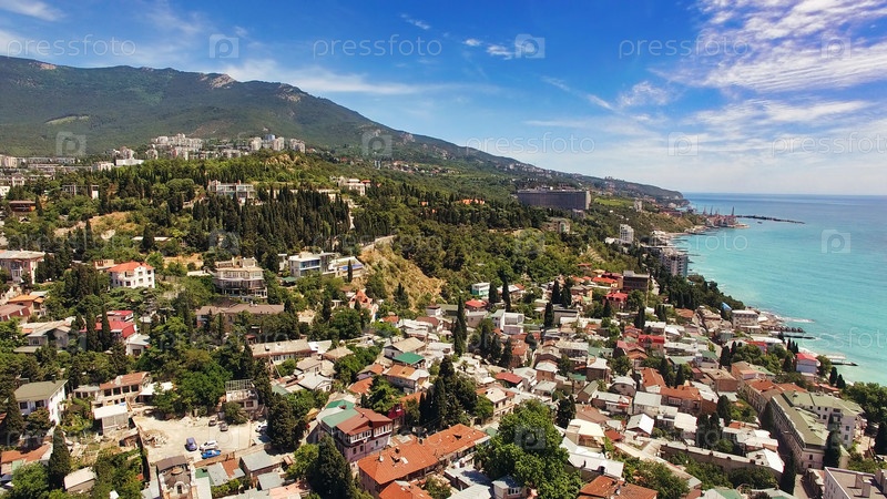 Вид сверху на городской пейзаж Ялты, Крым