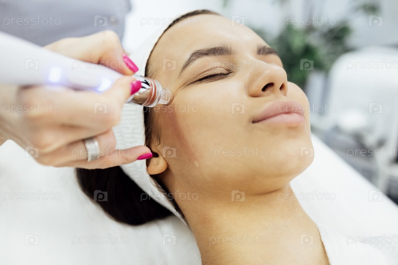 Брюнетка молодая женщина проходит процедуру витаминного пилинга