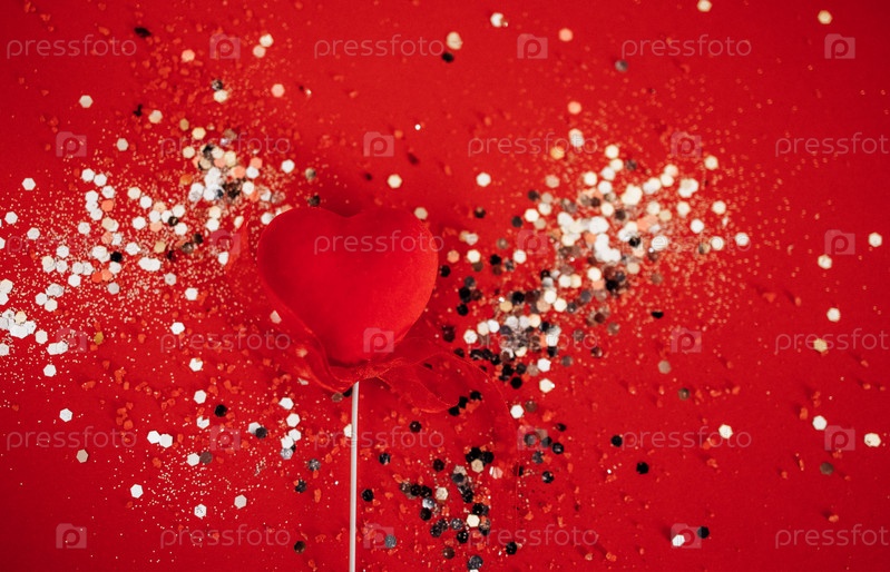 Суверенные бархатные сердца на красном фоне. Копирование пространства. Концепция Дня святого Валентина