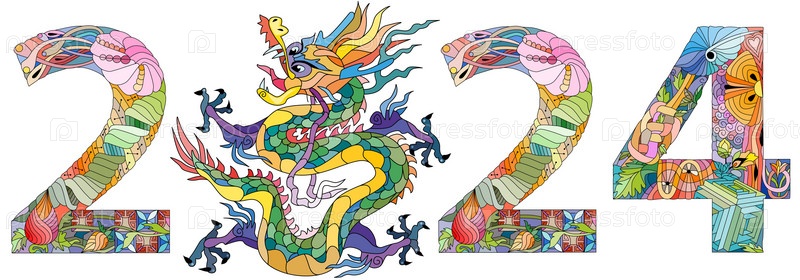 2024 текстовый дизайн логотипа для раскраски. Шаблон оформления Праздничный типографский плакат, баннер или поздравительная открытка с Новым годом