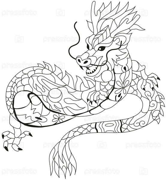 Дракон в стиле зентангл для раскрашивания, дизайна футболок, татуировок и других украшений