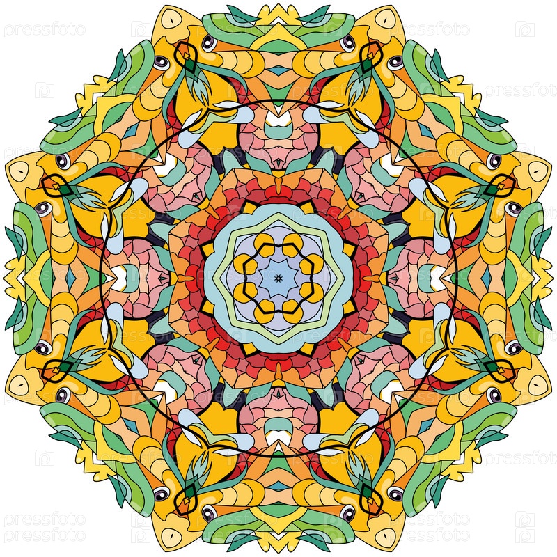 Декоративные круглые украшения. Необычная форма цветка. Восточный вектор, модели антистрессовой терапии. Переплетите элементы дизайна. Вектор логотипов йоги