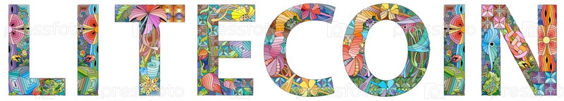 Litecoin это децентрализованная одноранговая криптовалюта. векторный декоративный объект zentangle. рукопись художественного дизайна