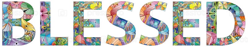 Ручная роспись художественного дизайна. Нарисованное вручную иллюстрационное слово БЛАГОСЛОВЕН для футболки и других украшений
