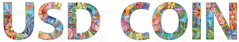 Иллюстрирующее слово USD Coin, окрашенное в теплые цвета для дизайна футболок, татуировок и других украшений
