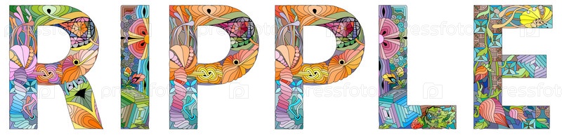 Ripple криптовалютная платформа для платежных систем. Векторный декоративный объект zentangle. Рукопись художественного дизайна