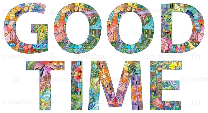 Ручная роспись художественного дизайна. Нарисованные от руки иллюстрации слова ХОРОШЕЕ ВРЕМЯ для футболки и других украшений