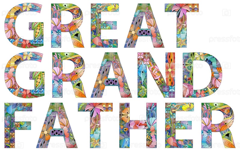 Ручная роспись художественного дизайна. Нарисованное вручную иллюстрационное слово ВЕЛИКИЙ ДЕДУШКА для футболки и других украшений