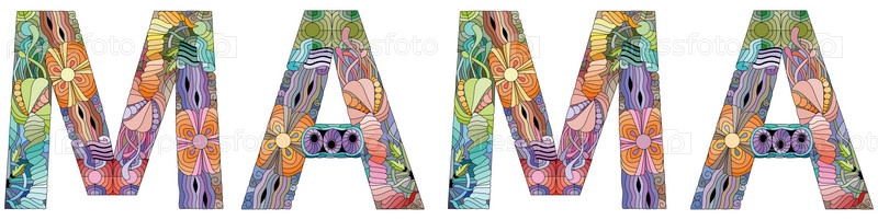 Ручная роспись художественного дизайна. Нарисованное вручную иллюстрационное слово МАМА для футболки и других украшений