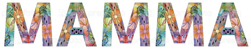 Ручная роспись художественного дизайна.Ручно нарисованное иллюстративное слово MAMMA для футболок и других украшений