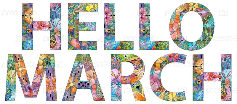 HELLO MARCH ручной векторная иллюстрация современного дизайна