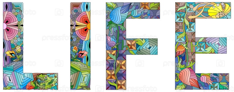 Ручная роспись художественного дизайна. Нарисованное вручную иллюстрационное слово ЖИЗНЬ для футболки и других украшений