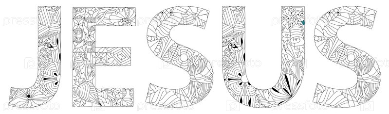 Ручная роспись художественного дизайна. Нарисованное вручную иллюстративное слово ИИСУС для раскраски, футболки и других украшений