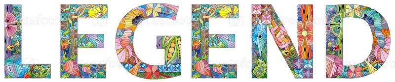 Ручная роспись художественного дизайна. Нарисованное вручную иллюстрационное слово ЛЕГЕНДА для футболки и других украшений