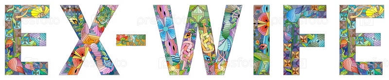 Ручная роспись художественного дизайна.Ручно нарисованное иллюстративное слово EX-WIFE для футболок и других украшений
