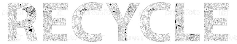 RECYCLE слово для окраски Ручная надпись Векторный текст