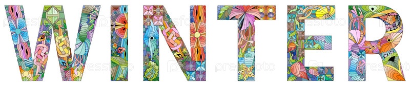 Ручная роспись художественного дизайна. Нарисованное вручную иллюстрационное слово ЗИМА для футболки и других украшений