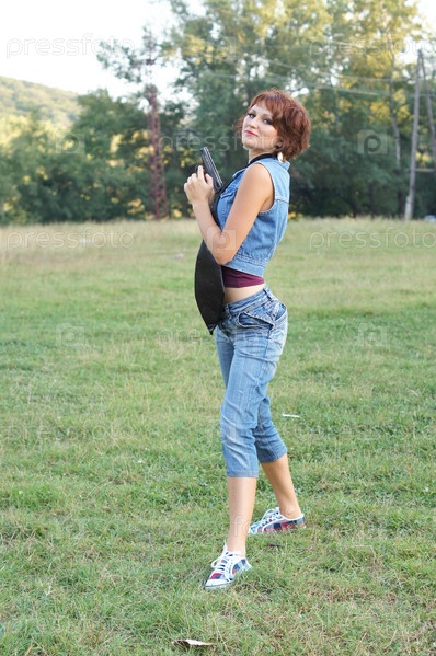 Девушка с пистолетом на природе