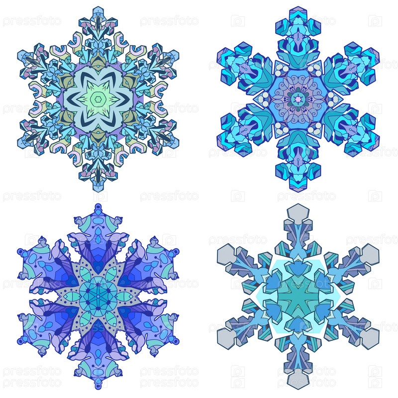 Набор зимних снежинок. Ручная рисованная декоративная векторная иллюстрация
