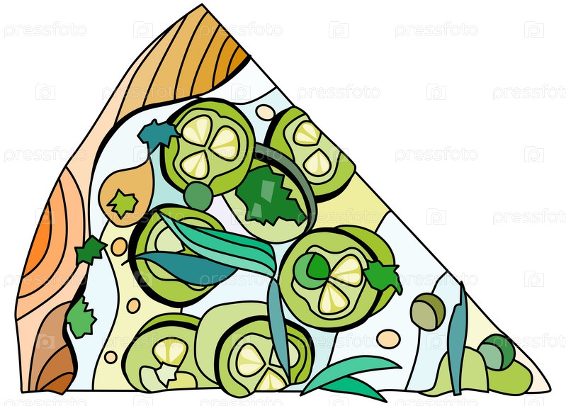 Кусок пиццы, декоративная векторная иллюстрация zentangle