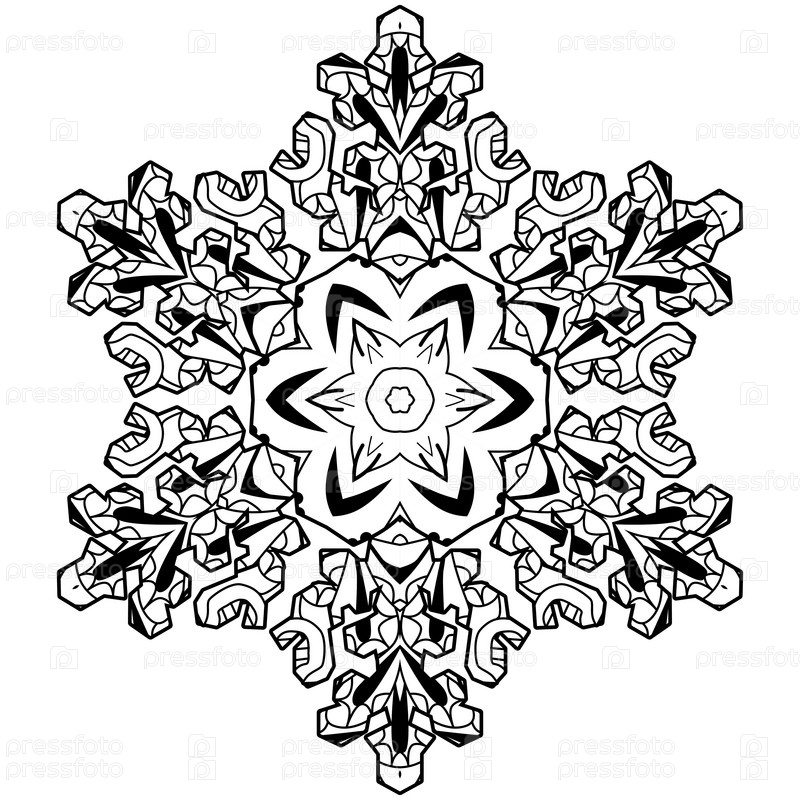 Снежинка зима. Ручная рисованная декоративная векторная иллюстрация для раскраски