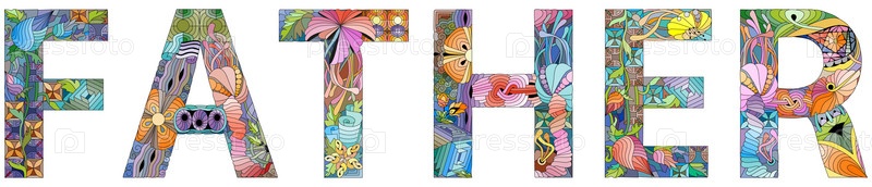 Ручная роспись художественного дизайна. Нарисованное вручную иллюстрационное слово ОТЕЦ для футболки и других украшений