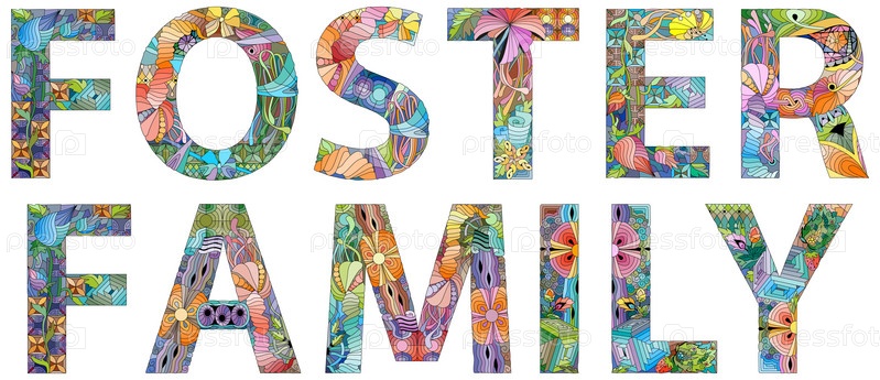Ручная роспись художественного дизайна. Нарисованные от руки иллюстрации слова ПРИЕМНАЯ СЕМЬЯ для футболки и других украшений