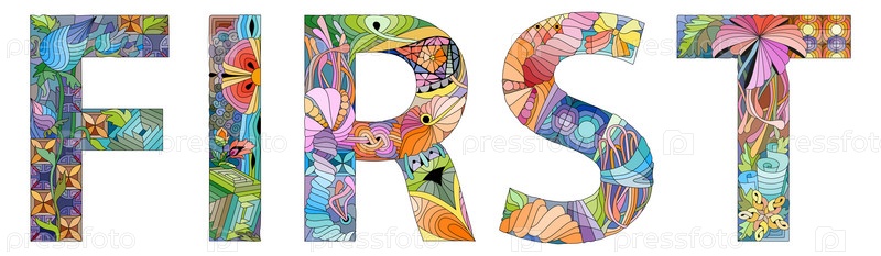 Ручная роспись художественного дизайна.Ручно нарисованное иллюстративное слово FIRST для футболок и других украшений