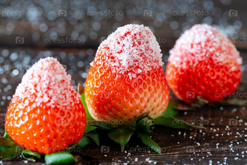 Три ягоды клубники садовой в сахаре