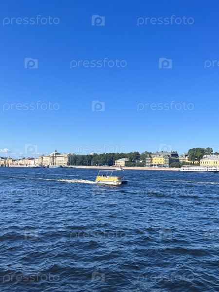 Корабль плывет по Неве в Санкт-Петербурге