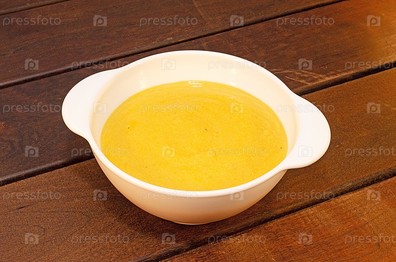Горячий тыквенный суп-пюре на деревянном столе