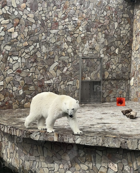 Большой белый медведь в зоопарке