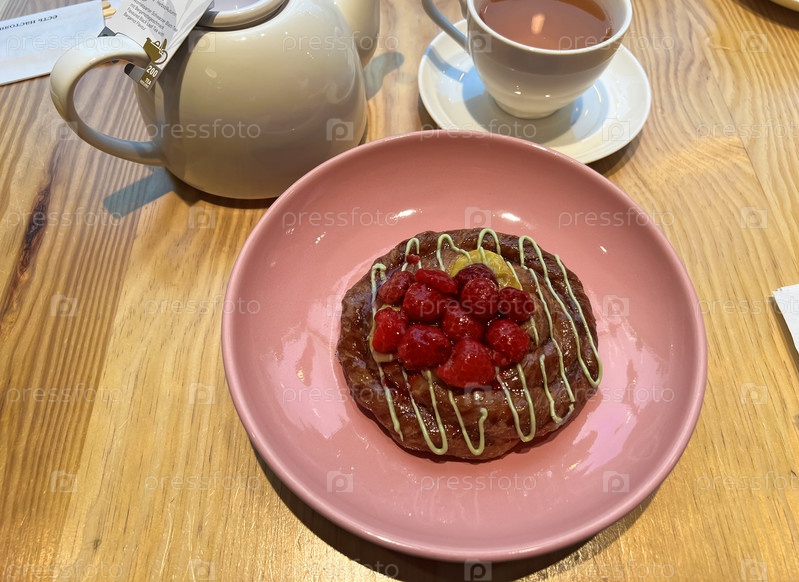 Малиновая булочка на завтрак и черный чай