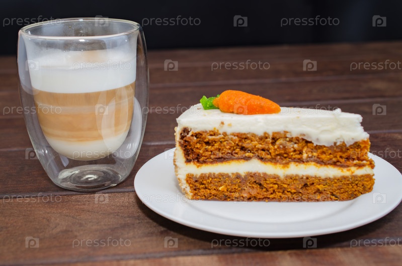 Морковный бисквит со сливками и грецкими орехами и кофе «Капучино»