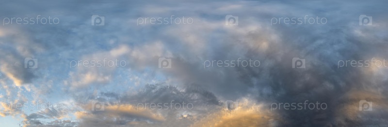 Россия. Юг Западной Сибири. Облака, освещенные заходящим солнцем в вечернем небе над бескрайними полями Алтая