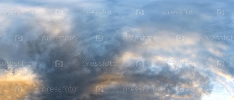 Россия. Юг Западной Сибири. Облака, освещенные заходящим солнцем в вечернем небе над бескрайними полями Алтая