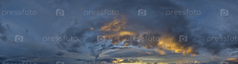 Россия. Юг Западной Сибири. Облака, освещенные заходящим солнцем в вечернем небе над бескрайними полями Алтая
