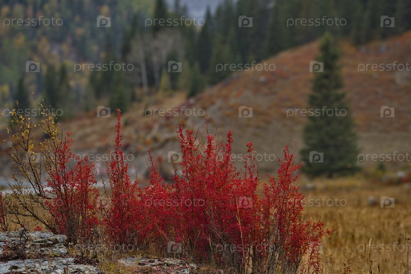 Россия. Юг Западной Сибири, Горный Алтай. Начало осени на живописных скалистых россыпях Курайской степи по Чуйскому тракту
