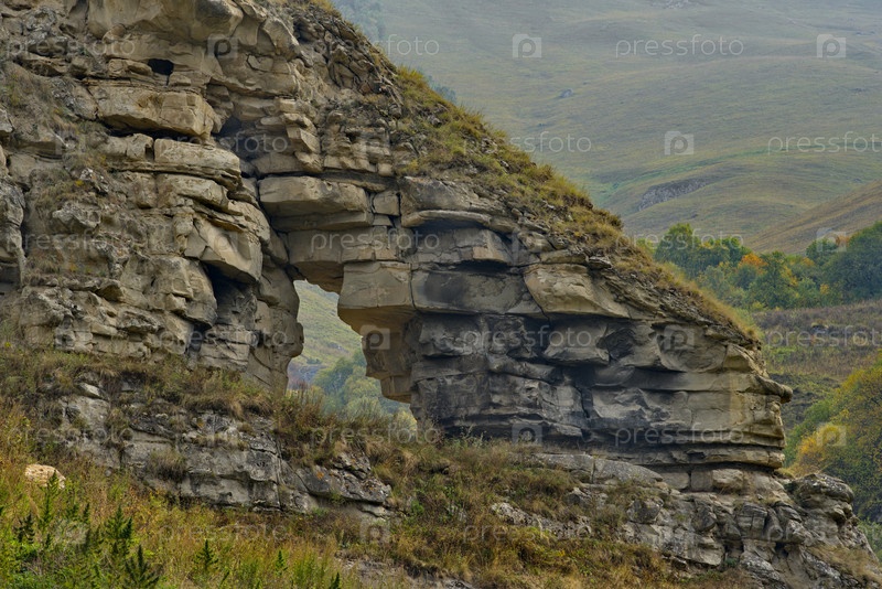 Россия. Северный Кавказ, Кабардино-Балкария. Уникальное горное образование Горные Ворота на перевале по пути в Чегемское ущелье