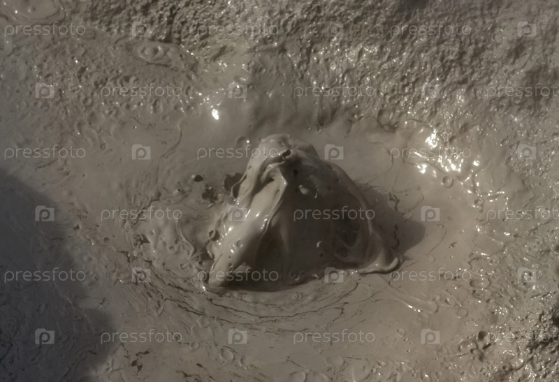Россия. Курильские острова. Причудливые грязевые пузыри, пузырящиеся фумаролы у подножья спящего вулкана Барановского на острове Итуруп