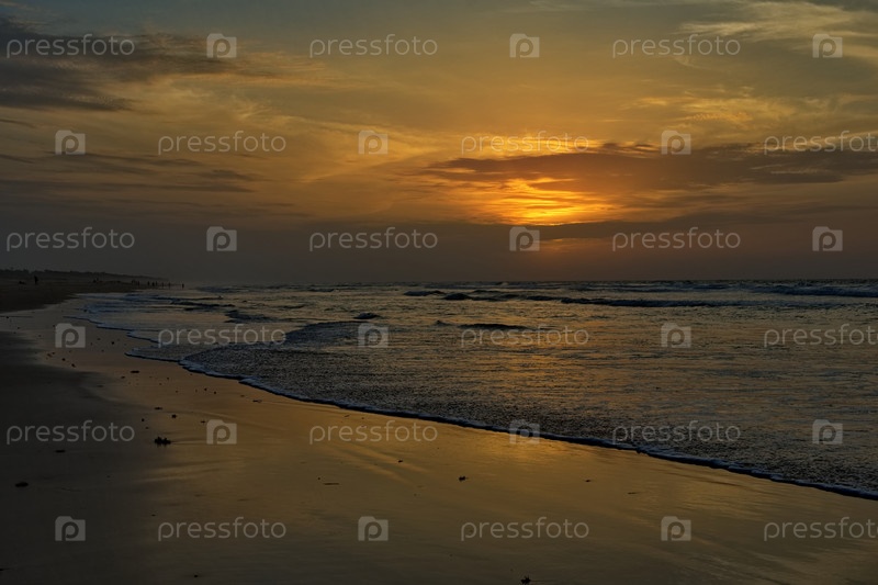 Западная Африка. Сенегал. Живописный малиновый закат на берегу Атлантического океана