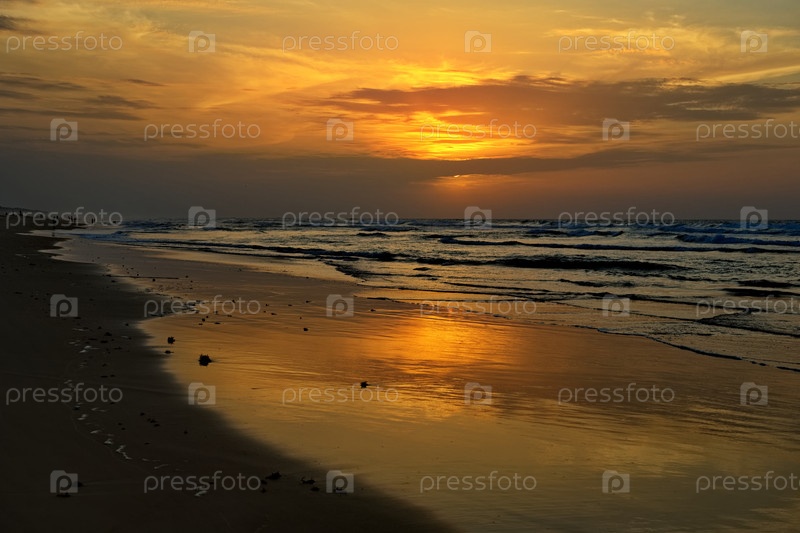 Западная Африка. Сенегал. Живописный малиновый закат на берегу Атлантического океана
