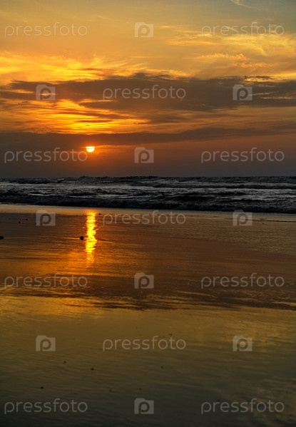 Западная Африка. Сенегал. Живописный малиновый закат на берегу Атлантического океана