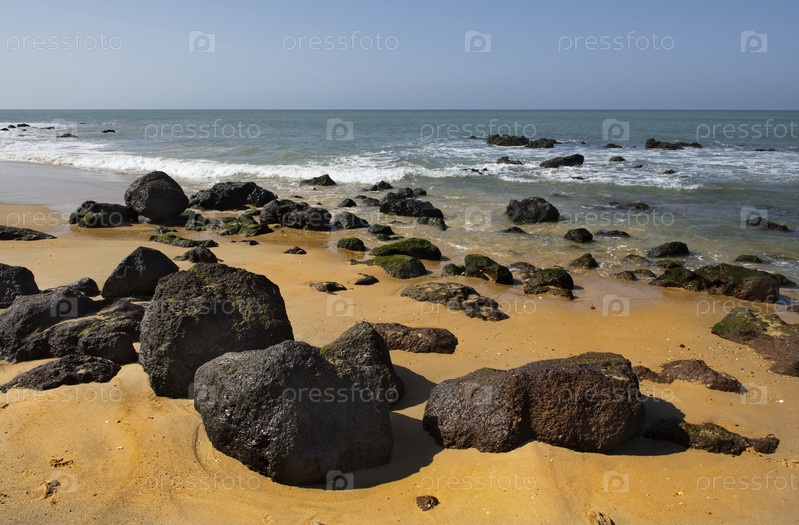 Западная Африка. Сенегал. Каменисто-песчаный пляж курортного города Нгапару на берегу Атлантического океана
