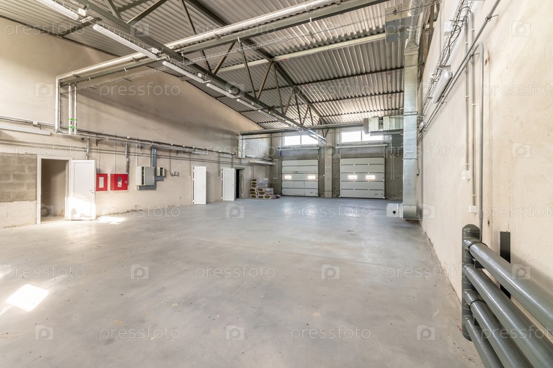 Промышленное здание или современный завод для производственного предприятия или большого склада, чистое состояние полированного бетонного пола и место для демонстрации промышленной продукции или отраслевого фона