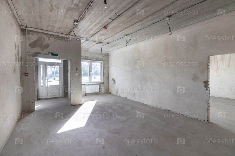 Пустое бетонное коммерческое помещение без отделки перегородками