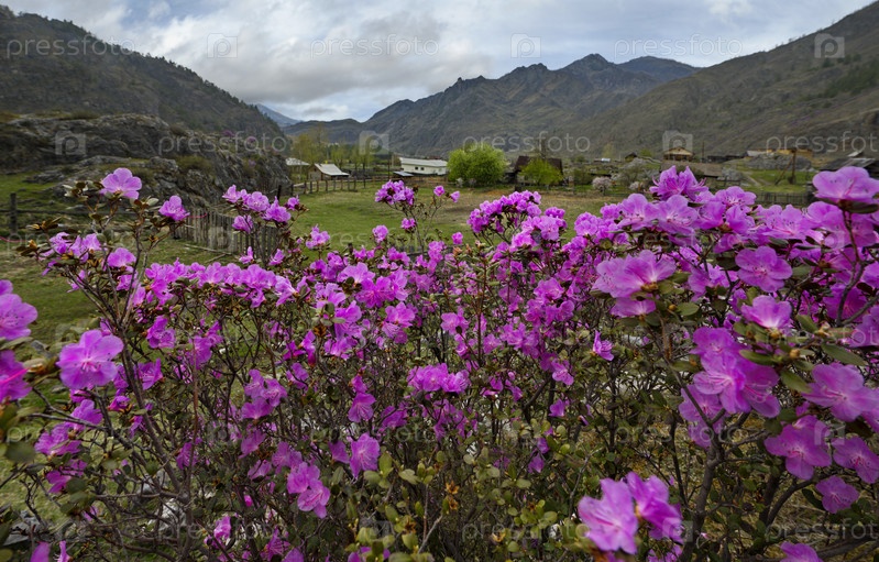 Россия. Юг Западной Сибири, весенние цветы Горного Алтая. Рододендрон. Период его цветения – главное событие весны в Горном Алтае, привлекающее множество туристов