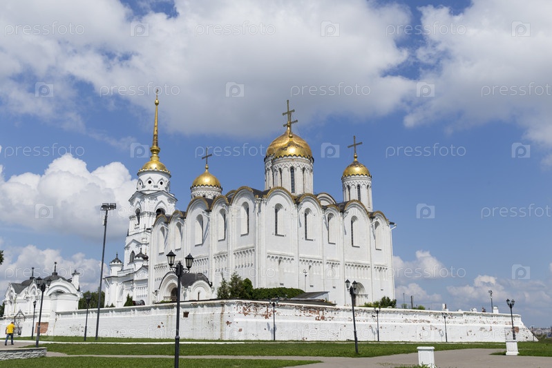 Россия. Владимир. Виды города Владимира. Часовня Богоматери и Успенский собор. Россия. Владимир. Виды на город Владимир. Капелла Божией Матери и Собор Вознесения