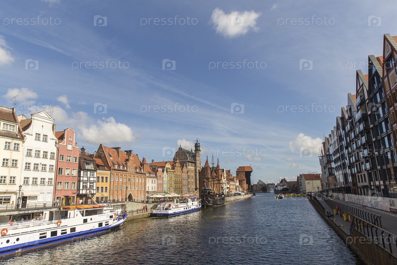 Польша. Гданьск. Здания в старых кварталах Гданьска на берегу реки Мотлавы. Польша. Гданьск